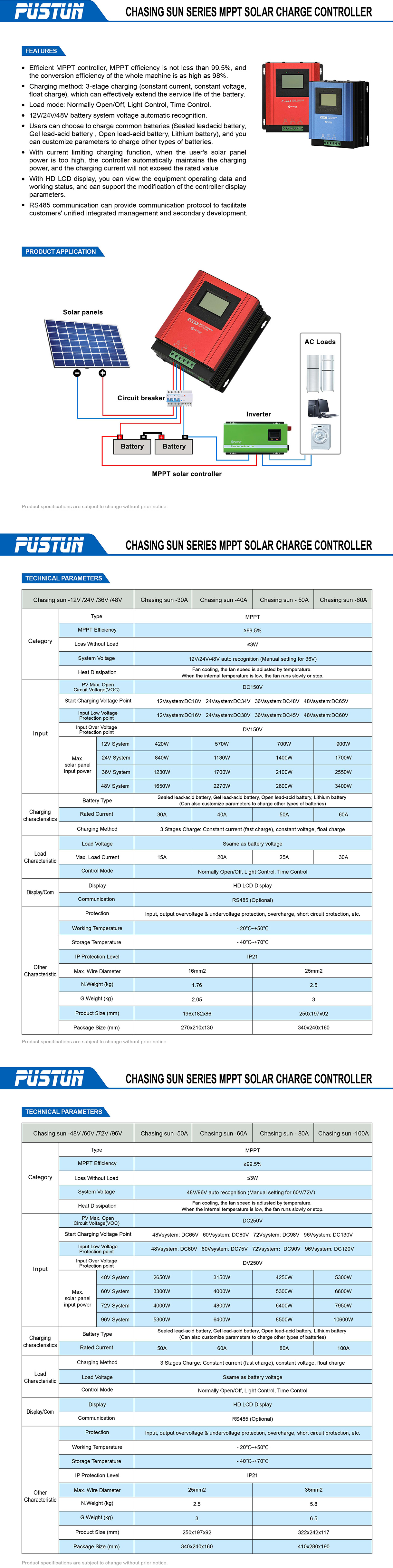 ● 12V/24V/48V battery system voltage automatic recognition.