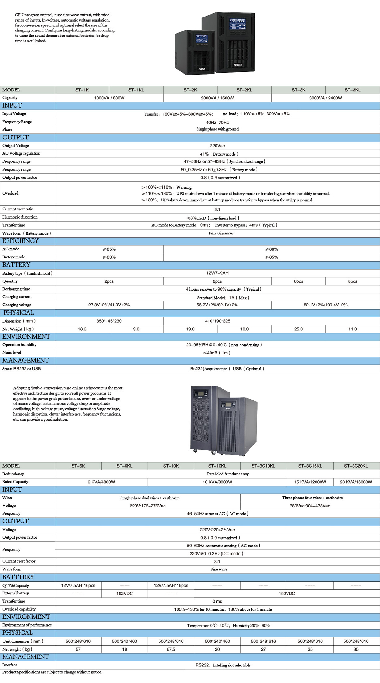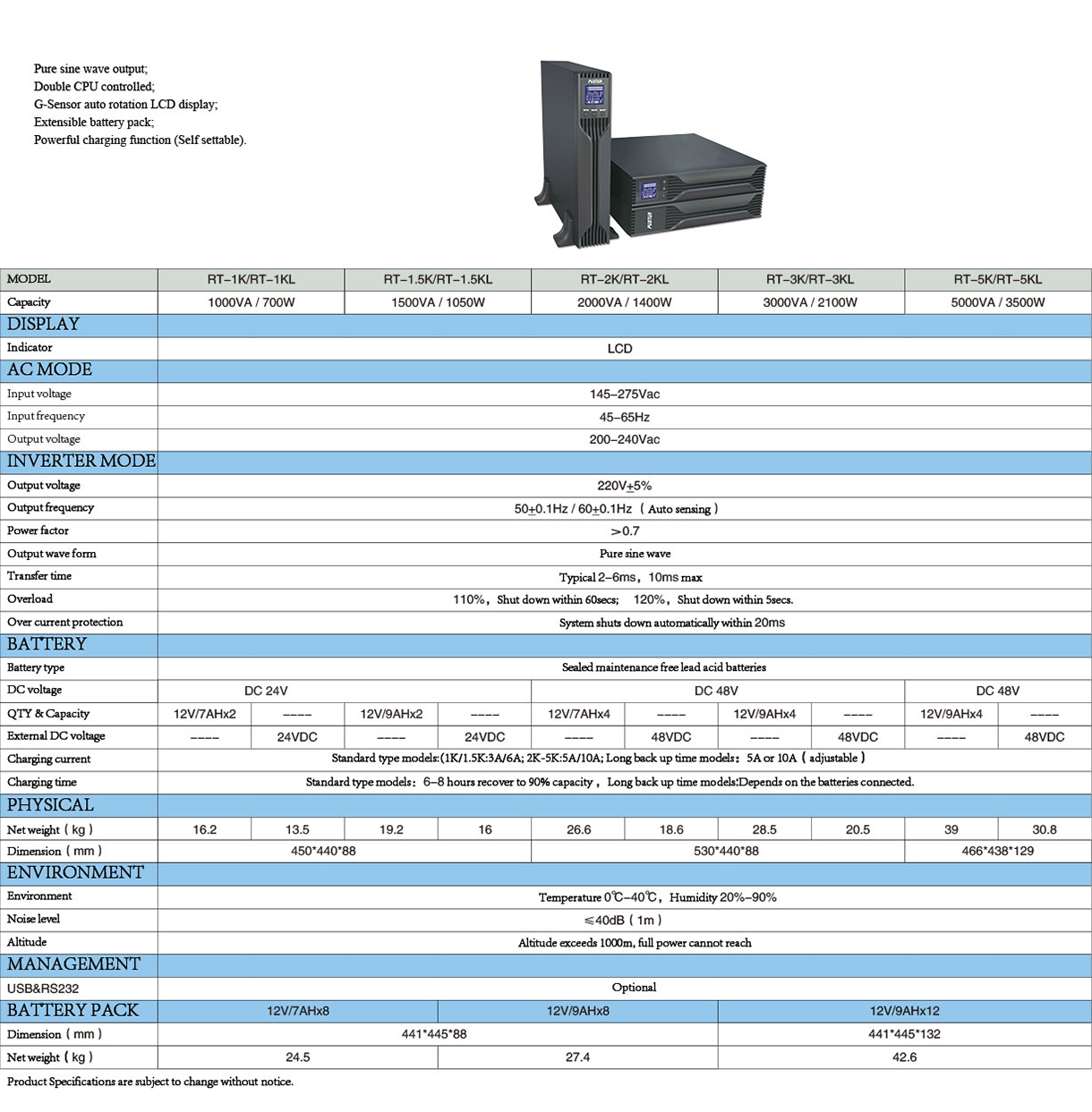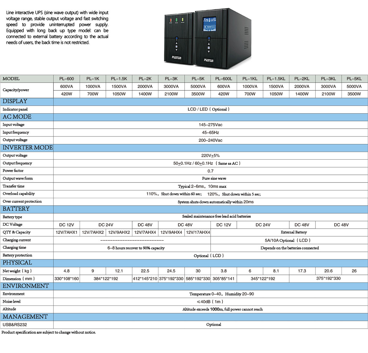 specifications ( Standby, Line interactive L,
